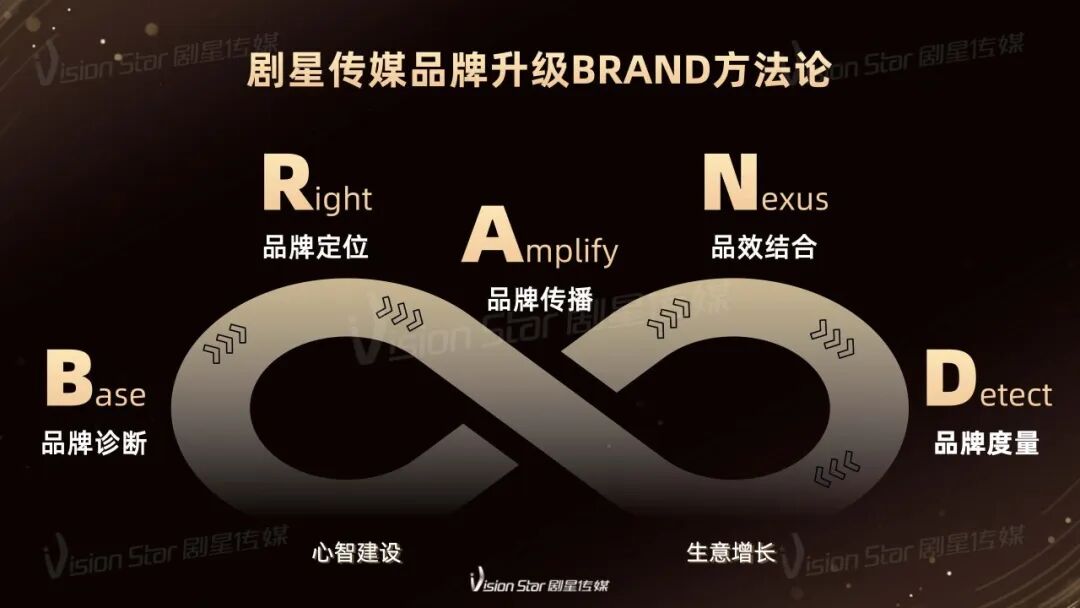 剧星传媒提出的品牌升级方法论,核心在于回归增长的本源——用户心智,并以此为基础构建从心智沉淀到全链路增长的完整体系。该方法论以“BRAND”为框架,系统涵盖品牌诊断(Base)、品牌定位(Right )、品牌传播(Amplify)、品效结合(Nexus)与品牌度量(Detect )五大环节,形成闭环式的品牌跃迁路径,为品牌破解增长困境提供系统解决方案。